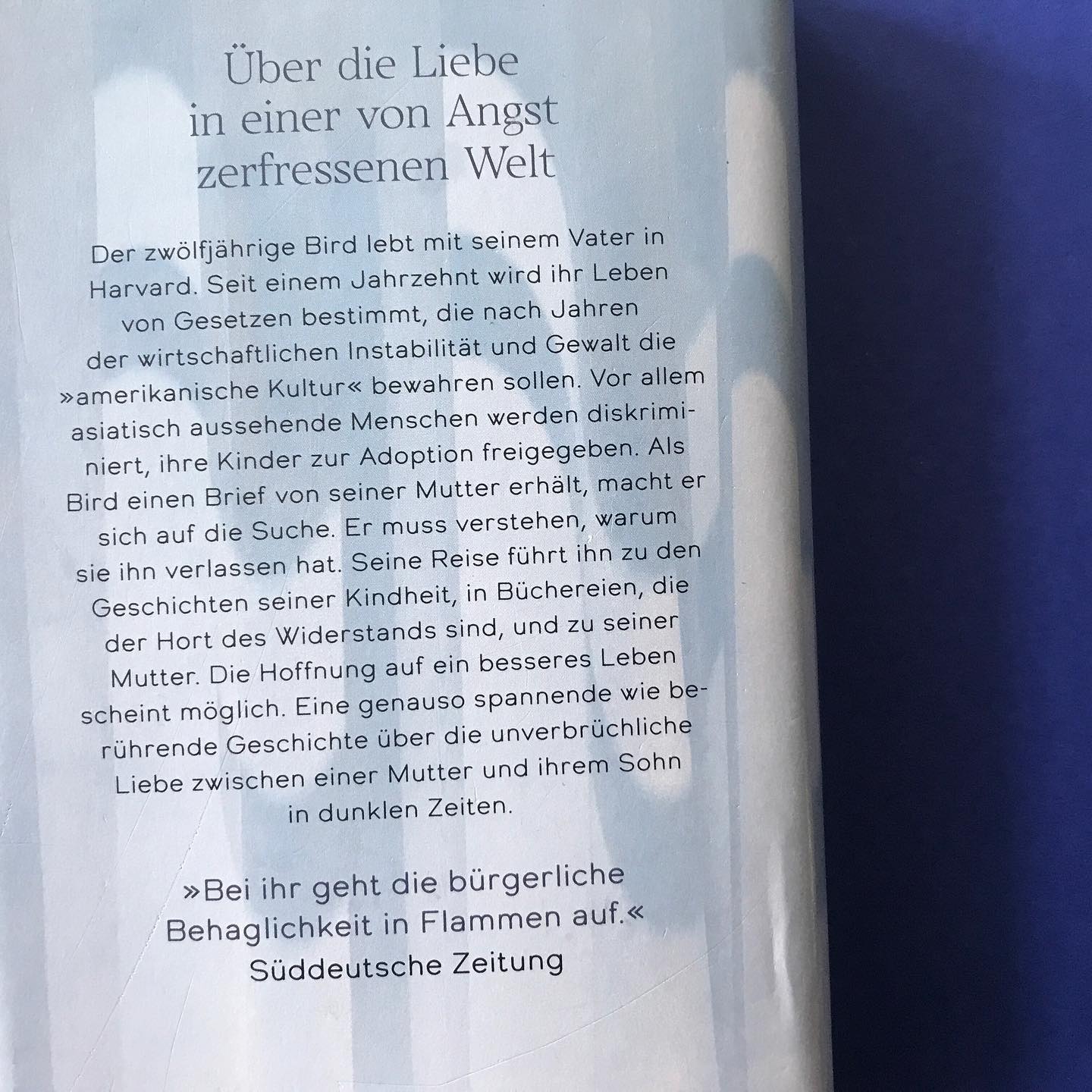 This will break your heart in 1000 pieces 💔: Nach 30 Seiten wollte ich das Buch weglegen, zu schrecklich, too close to home ist die Geschichte, die Celeste Ng in ihrem neuen Roman erzählt: Harvard in der nahen Zukunft, in den USA gibt es ein neues Gesetz: „PACT“ dient der Erhaltung US-amerikanischer Kultur und Tradition, in Kraft, um antiamerikanische Elemente aufzuspüren, die die Nation zersetzen. Seid patriotisch, passt aufeinander auf, meldet Aufruhr. Eine Krise einige Jahre zuvor hat den Weg frei gemacht: Hohe Inflation und Arbeitslosigkeit, nach dem Job verlieren die Menschen ihre Häuser, es gibt Plünderungen, Proteste und einen Schuldigen: China. Die Folge: Tägliche Übergriffe auf asiatisch aussehende Menschen. Kinder werden aus ihren Familien gerissen und zur Adoption frei gegeben. In dieser Welt lebt der 12-Jährige Bird mit seinem Vater in einem Studentenwohnheim. Seine Mutter, eine Dichterin mit chinesischem Background, die als Aktivistin auf der Straße war, ist weg. Jahre später bekommt Bird einen Brief von ihr – und beginnt, sie zu suchen. Es tat weh, #ourmissinghearts zu lesen. Atlanta 2021. Die lange Praxis auseinander gerissener Familien zu Machtzwecken, sei es in der Zeit der Sklaverei, Internate für indigene US-Amerikaner*innen, das Vorgehen an der mexikanisch-US-amerikanischen Grenze. Der Kampf in den Schulen, welche Bücher noch und nicht mehr gelesen werden dürfen. All das und noch ganz viel mehr steckt in diesem Buch. #Unsreverschwundenenherzen fragt aber auch danach, was wir tun können, in einer Welt die aus den Angeln gehoben scheint. Und es ist ein Buch über die Macht von Büchern und die Macht von Geschichten, darüber, was Menschen mit Kunst und Worten erreichen können. Ganz viel Liebe für dieses neue Buch von bestselling Superstar Celeste Ng kann nur ein Erfolg werden.